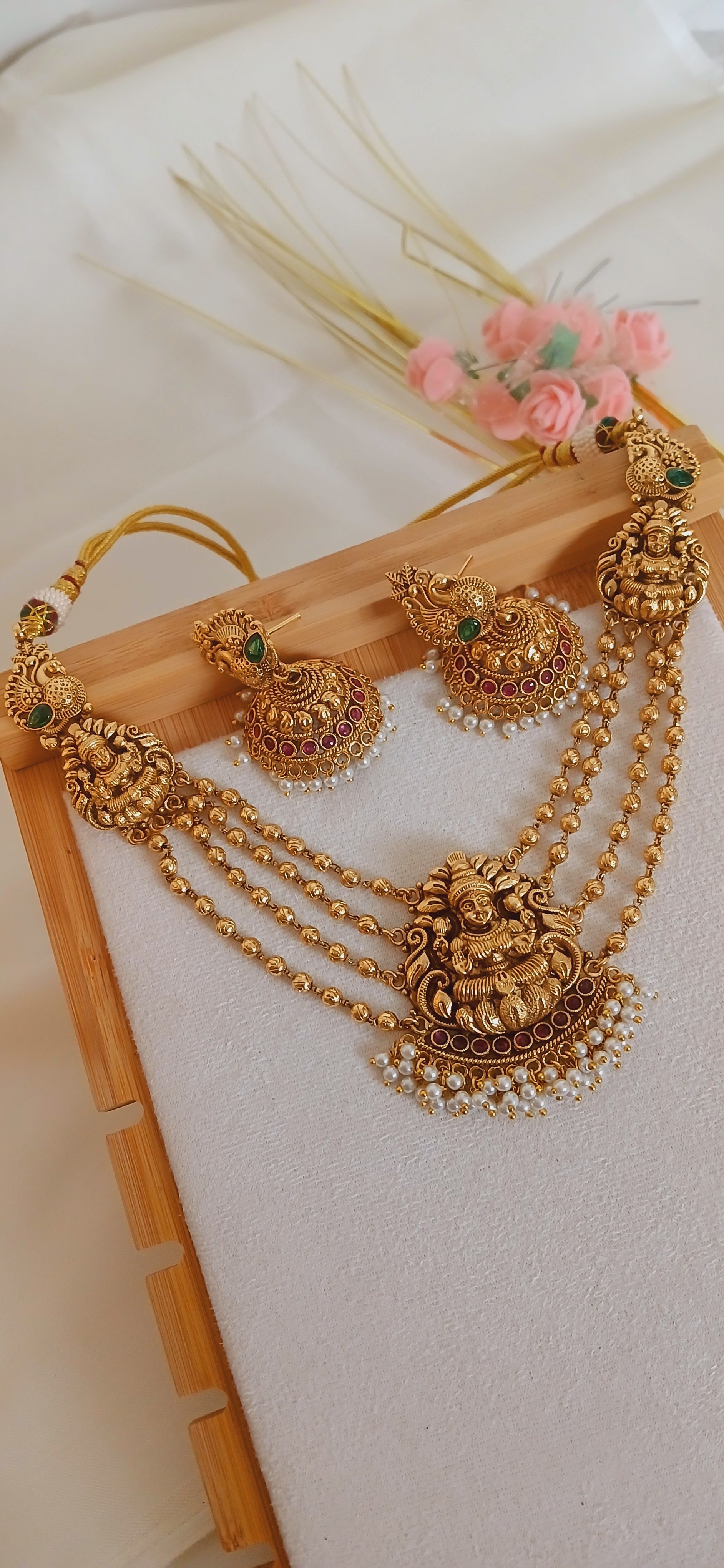 elegant four layer ball chain with antique intricate nagas neck piece is a must have piece in your jewel rack