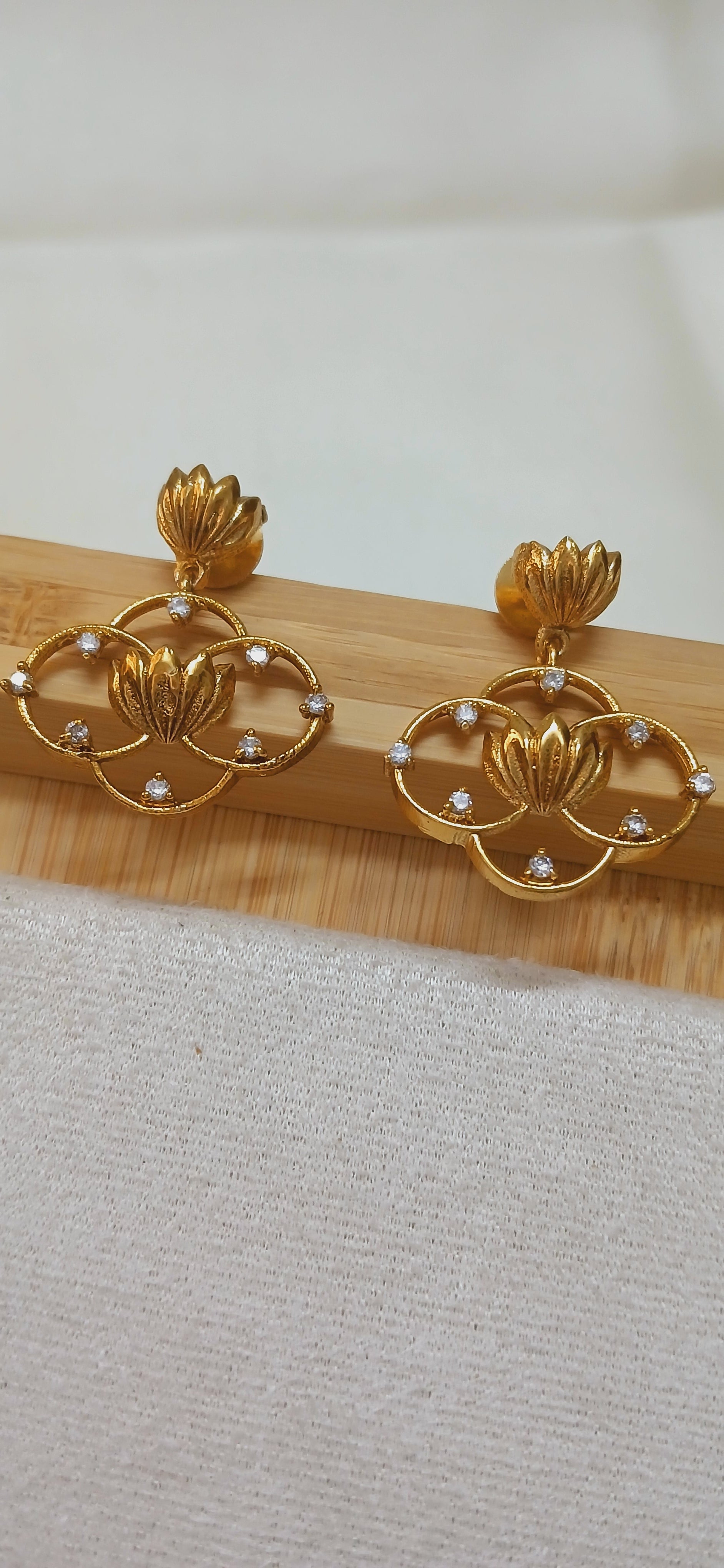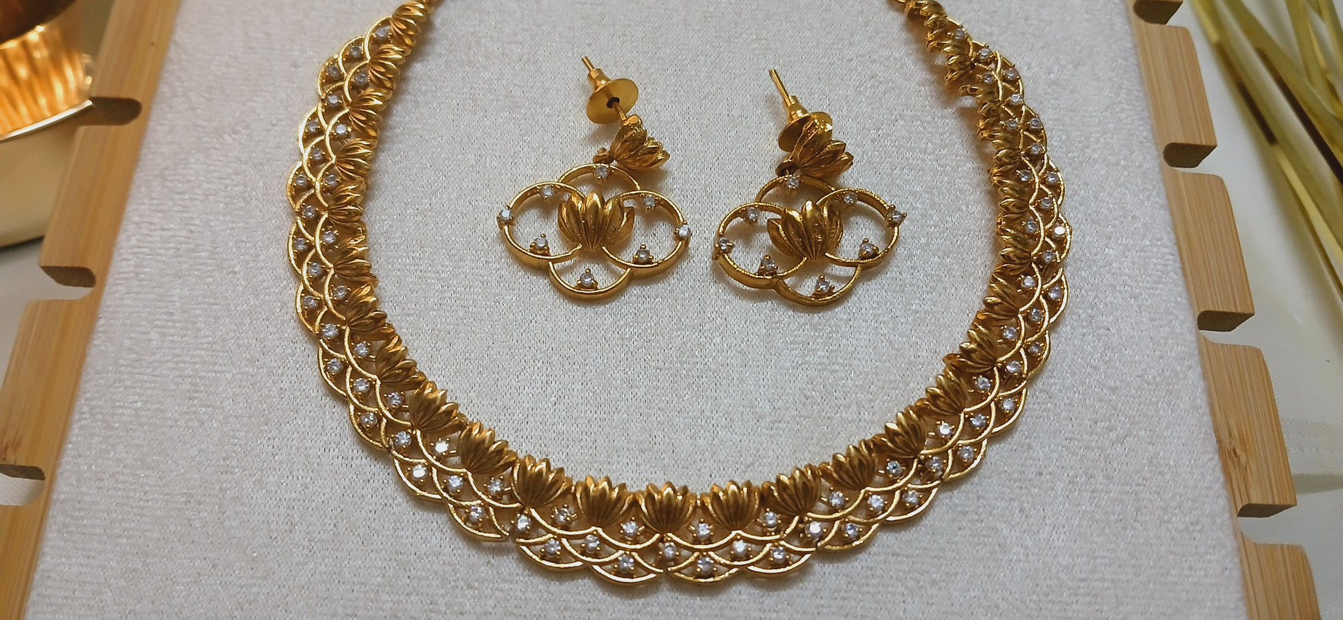 lotus buds gold finish and AD stones choker set paired with matching ear drops