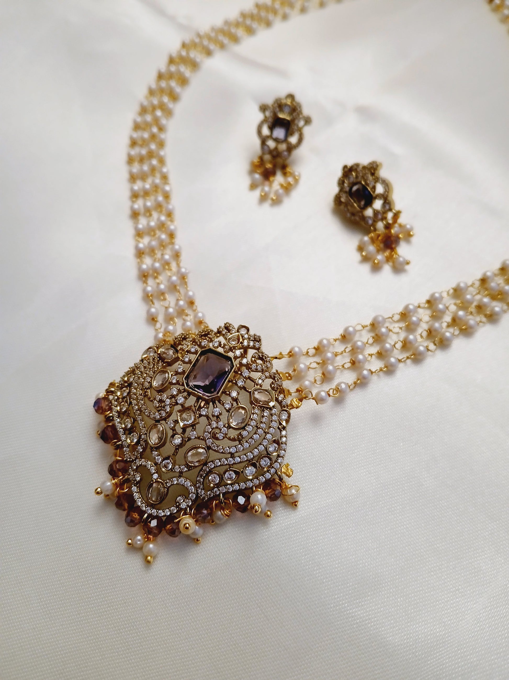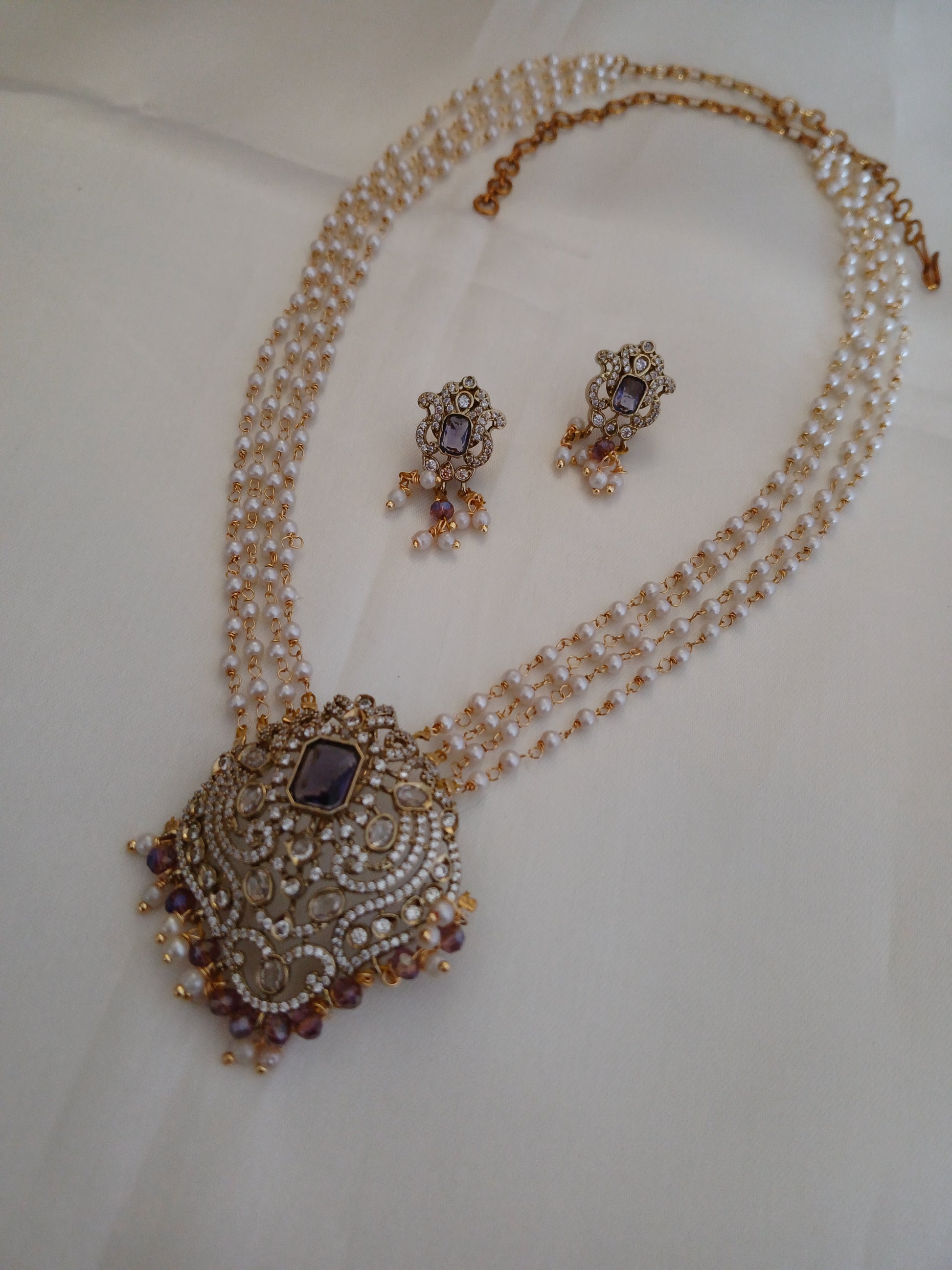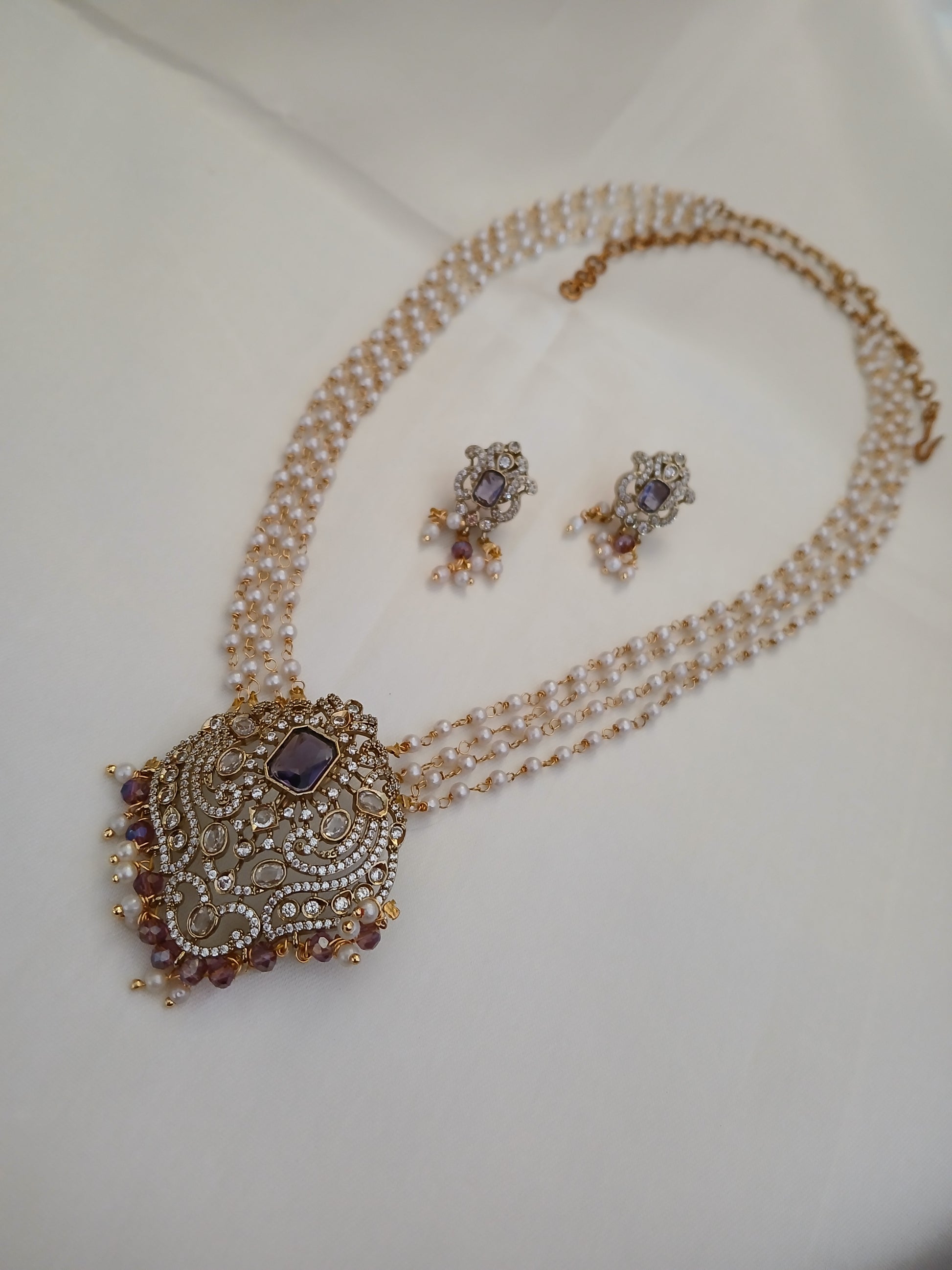 Purple 4 line pearl Haaram set