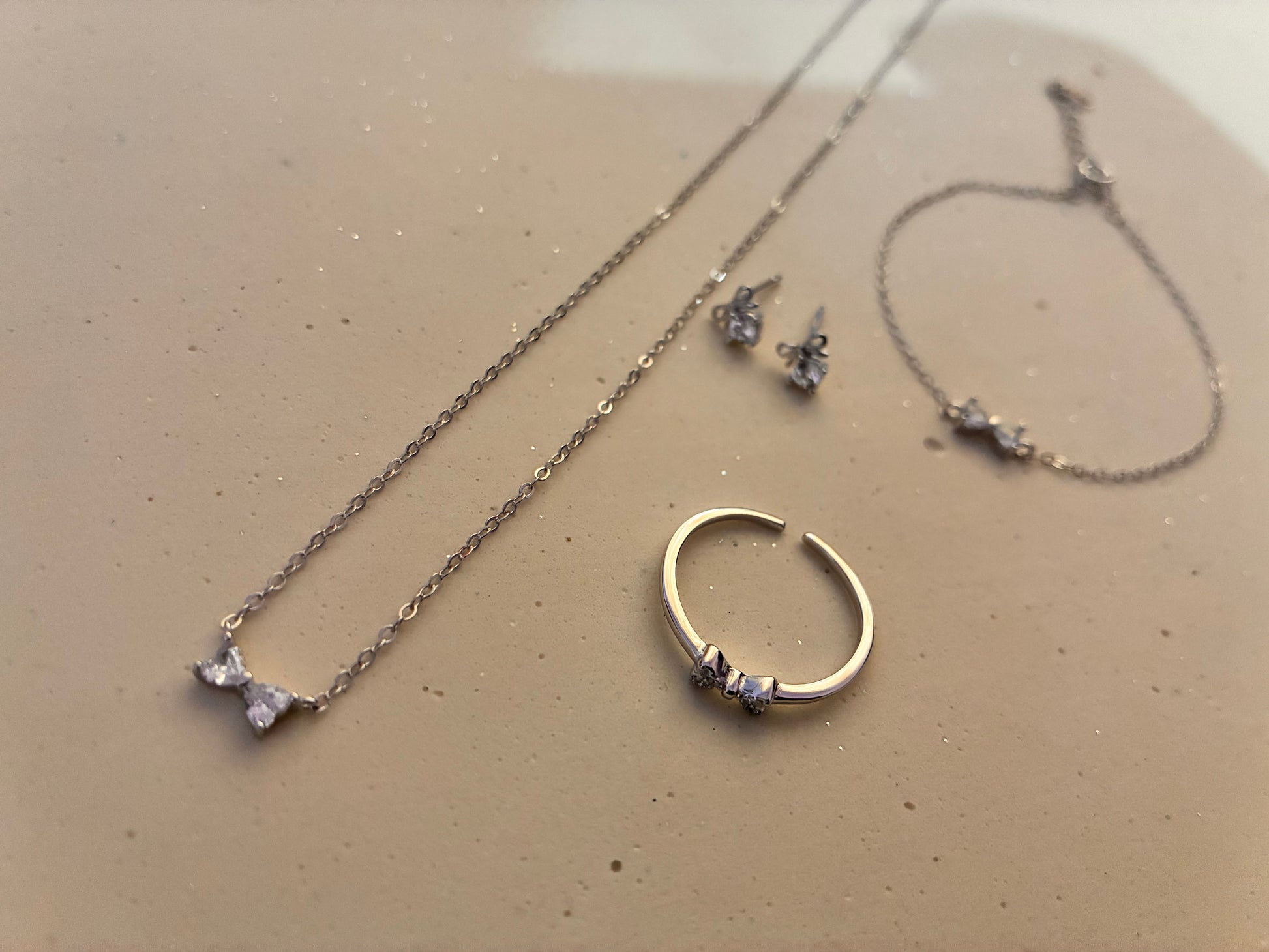 Classification: Dainty necklace, studs, bracelet and ring (one size - adjustable)combo set